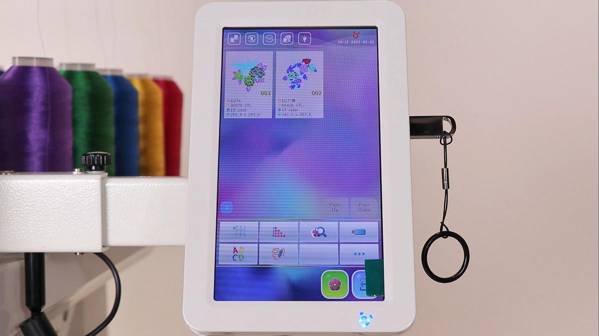 1. Touch Screen Display: Both of our modern commercial embroidery machines are equipped with a color touch screen display that provides an intuitive interface for the user to interact with the machine. The touch screen allows users to navigate menus, enter design parameters and make adjustments with ease.