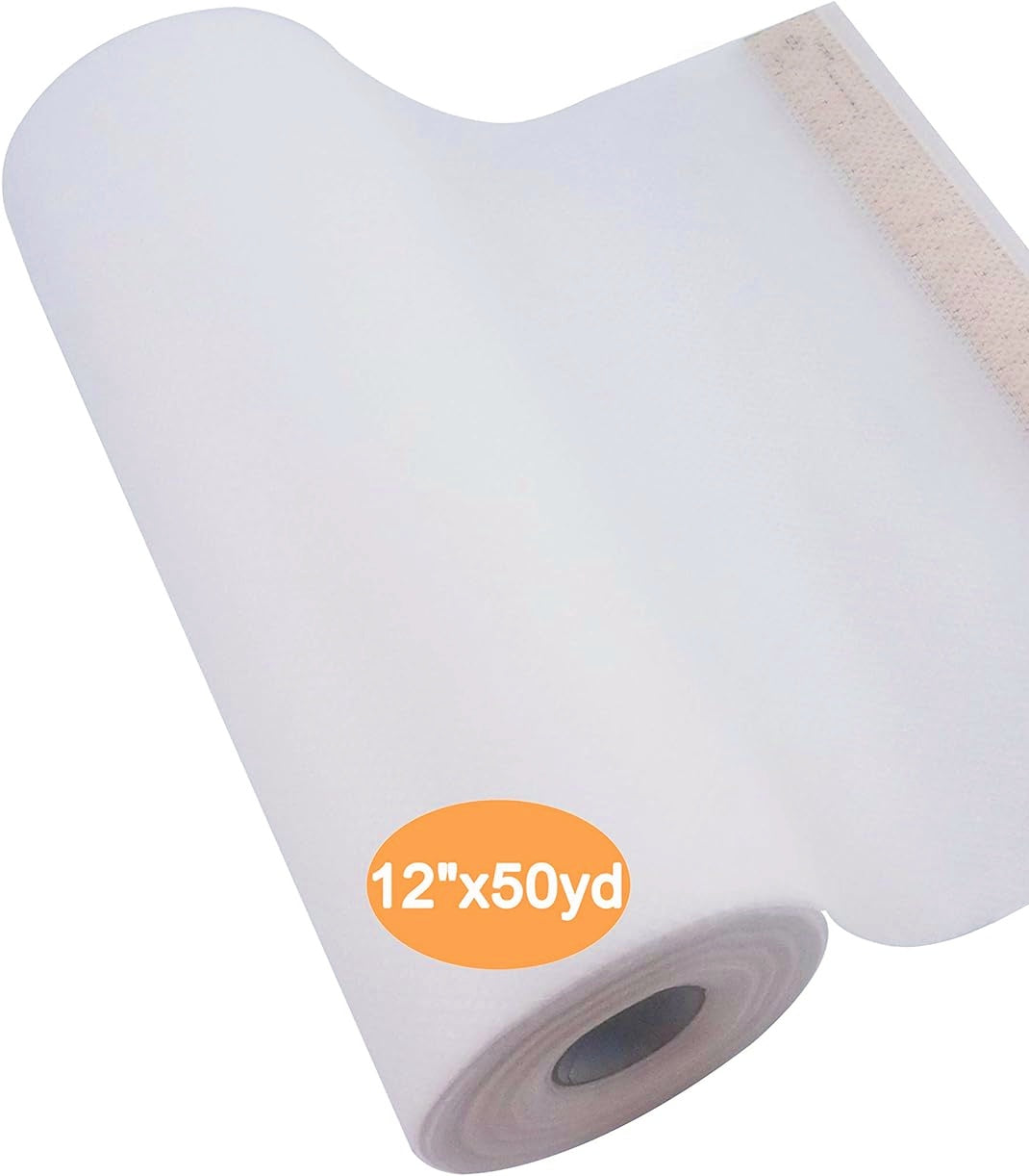 This is no show mesh stabilizer which provides permanent support for embroidery projects. Unlike traditional cutaway stabilizer, our no show mesh stabilizer eliminates the backing showing through light colored fabrics because of its semitransparent, soft and sheer texture. (similar to Sulky Soft'n'Sheer, Weblon, OESD Polymesh). For the embroidery designs with light stitches, just put one layer stabilizer under the fabric, then hoop and stitch together. One layer can be strong enough to produce best “no show” results.For heavy stitches, denser designs or thicker fabrics, you can put one layer of light weight tearaway stabilizer underneath of no show mesh stabilizer for extra stability, then hoop and stitch together. After the design is completed, the tear away stabilizer can be torn off and just leave the soft mesh against the skin.