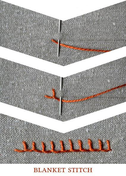 Blanket stitch can be worked as an open or closed stitch. Depending on how much of the fabric you want to cover you can adjust the space between each stitch. This embroidery stitch works best for squares or shapes that don’t have many angles – like ovals, circles, or ribbons.