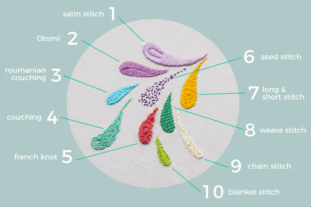 Now, I have bombarded you with 10 different embroidery stitches for filling areas. Which one works best for your project? That is for you to decide. To make things easier, you’ll find a list below that says which stitches work great for which purpose.