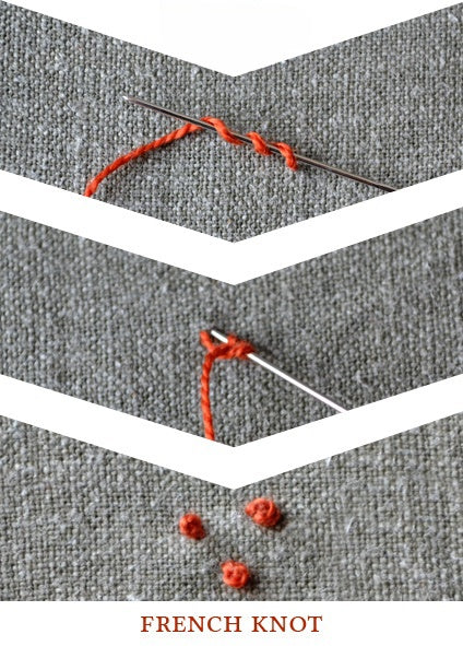 Knots add a lot of dimension to your embroidery. I choose thefrench knotand the colonial knot for the tutorial here. Both are excellent embroidery stitches to fill areas. They look quite similar. The French knot is rather like a ball sitting on the fabric while the colonial knot is sitting flatter to the ground.