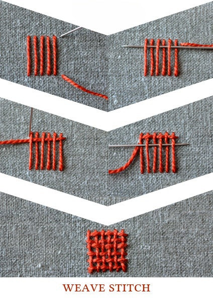 Weave stitchis a very interesting way to fill an area. It produces a woven texture and technically you can use many weaving techniques, not just the regular up and down shown in the tutorial here.