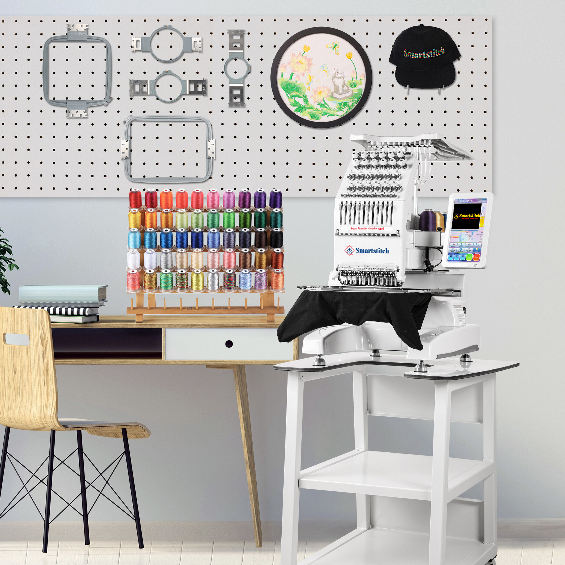 ★ Versatile Embroidery Applications with Starter Pack: S-1201 excels in embroidery applications on various materials, including denim, canvas, leather, vinyl, caps, shoes, and bags. Transfer DST/DSB files from your computer to the machine via WiFi or USB effortlessly. Our starter kit includes (1) 15 5000m spools (2) 25 type L 90wt bobbin thread (3) 15 inchX25 yd tear away stabilizer.