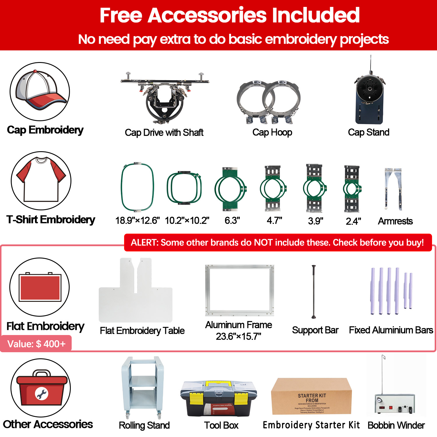 ★Endless Embroidery Possibilities: S-1501 commercial embroidery machine empowers you to stitch on diverse materials like denim, canvas, leather, caps, shoes, and more. Easily transfer DST/DSB files from your computer to the machine via WiFi or USB. Our starter kit includes (1) 15 5000m spools (2) 25 type L 90wt bobbin thread (3) 15 inchX25 yd tear away stabilizer.