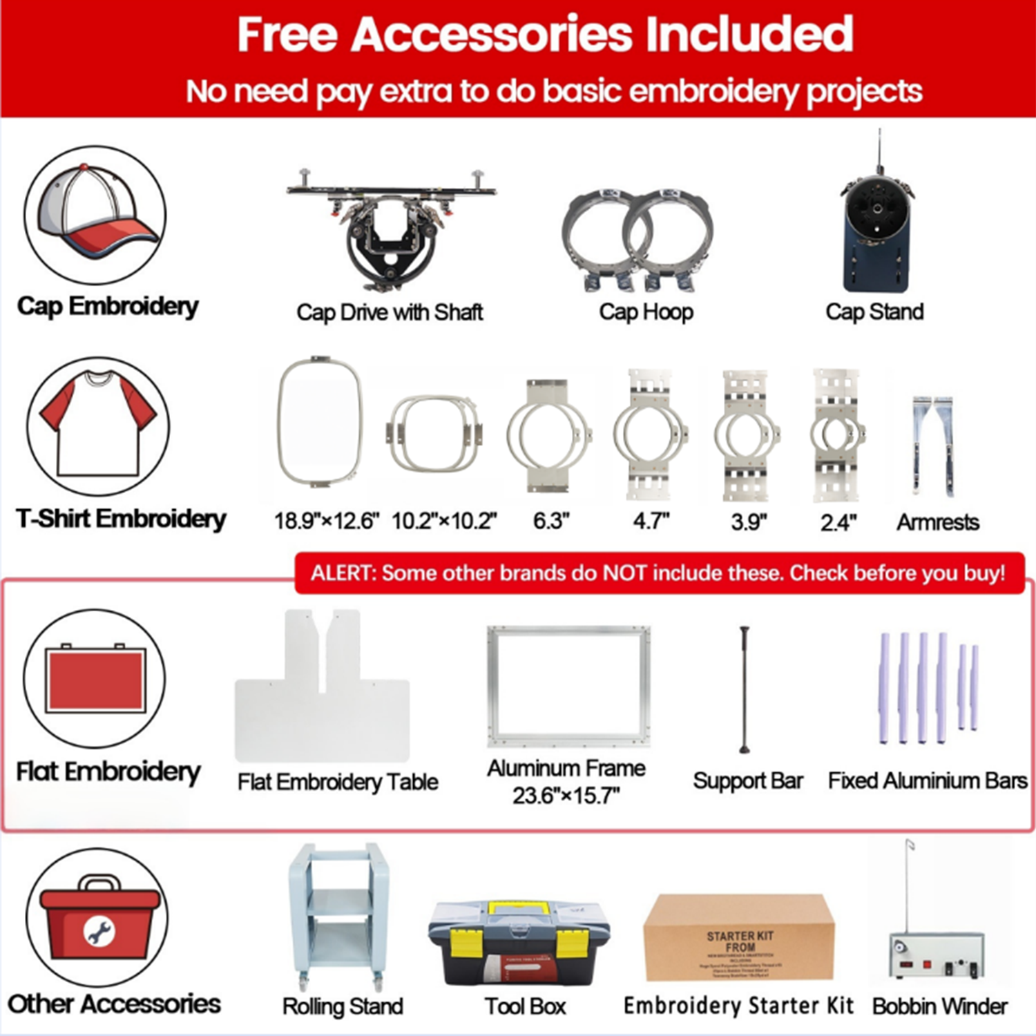 ★Comprehensive upgrade of hat embroidery: Achieve high-quality cap embroidery with the precise circular knife shear and upgraded high needle plate. The cap drive updated with Reinforced Nylon+Carbon Fiber contributes to a significantly quieter and more dependable cap rotation, enhancing the overall user experience. The double-upgraded main track structure ensures smoother and more accurate stitching across all your embroidery projects.