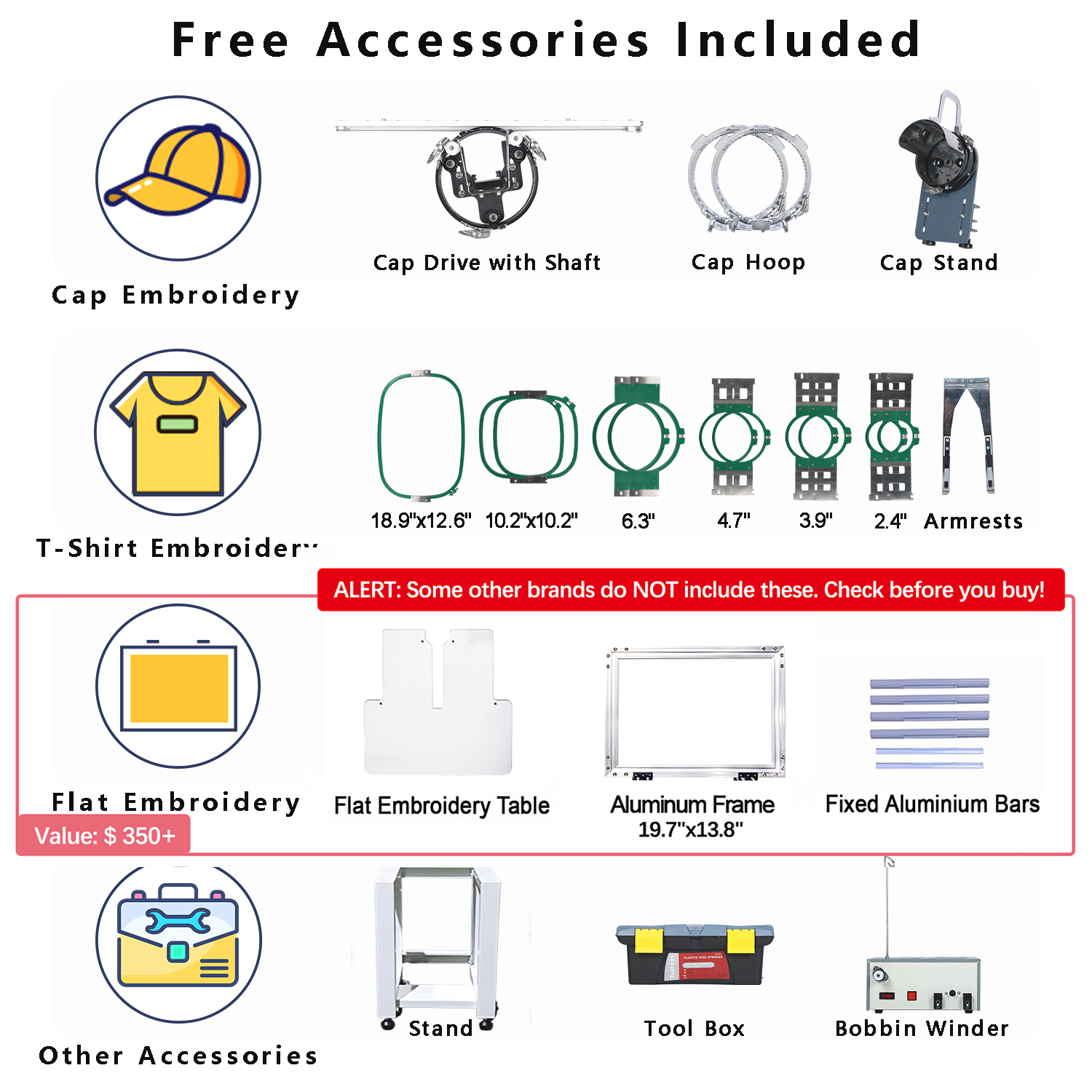 ★Flexibility and Precision for Caps Embroidery: From traditional flat cap embroidery to advanced 3D effects, from delicate little letters to satin stitch.Whether you’re looking to embroider company logos, team names, or personal messages, this machine handles it all with ease. You can easily position embroidery on various parts of the hat—whether it’s the front, side, or back.