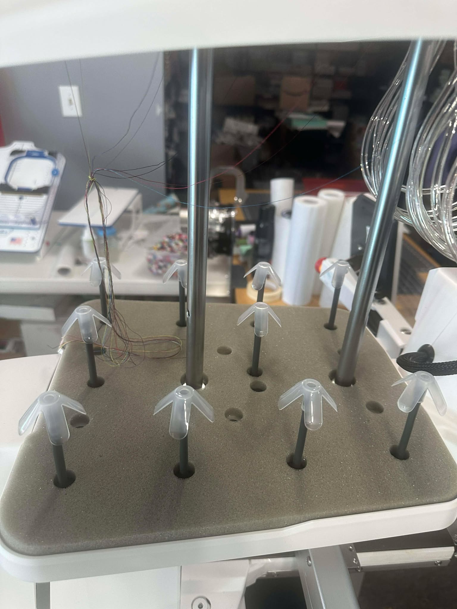 ★ Accessories: All accessories are in. Bobbin thread, stabilizer, thread only a few of which are used for testing. The machine does not come with a mighty hoop; the video is only for demonstrating the embroidery process.