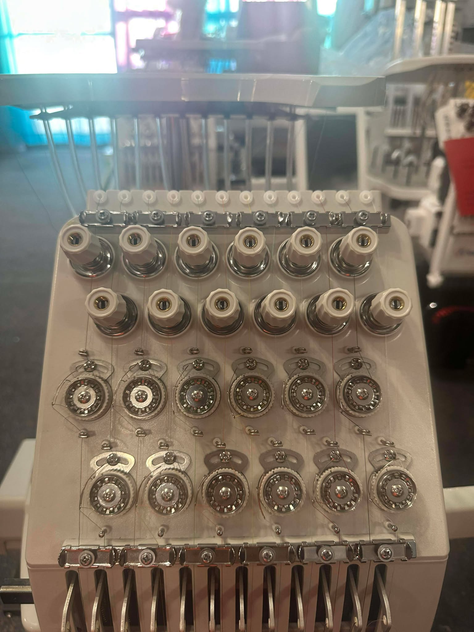 ★ Accessories: All accessories are in (nearly new). Bobbin thread, stabilizer, thread only a few of which are used for testing.